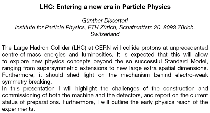 Wednesday 2.9.2009 at 10:50 h, lecture hall A